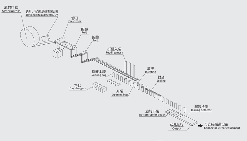 整個包裝過程透明可見,智能監控系統確保面膜包裝的最大安全性能和最大效率。